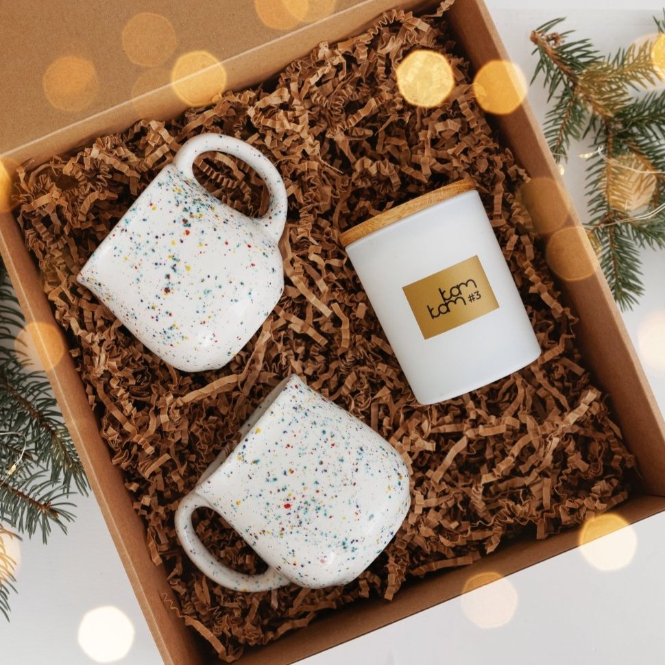 "Konfeti" puodelių ir žvakės rinkinys – tai spalvinga ir jauki dovana, kuri suteiks šypseną kiekvienam. Šis rankų darbo rinkinys suteiks jūsų namams žaismingumo ir šilumos.
